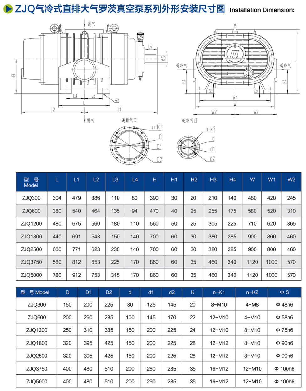 ZJQ氣冷式直排大氣羅茨真空泵系列 / ZJQ氣冷式羅茨真空機(jī)組